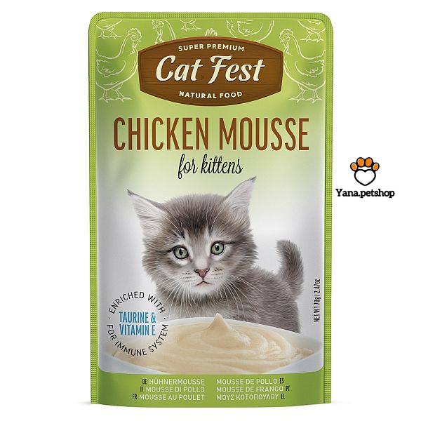پوچ بچه گربه کت فست مدل موس Cat Fest Duck Mousse for Kittens محصول کشور روسیه یک غذای مرطوب سوپر پریمیوم مخصوص بچهگربههاست که با بافت موس فوقالعاده نرم و طعم جذاب در 2 طعم تهیه شده است.