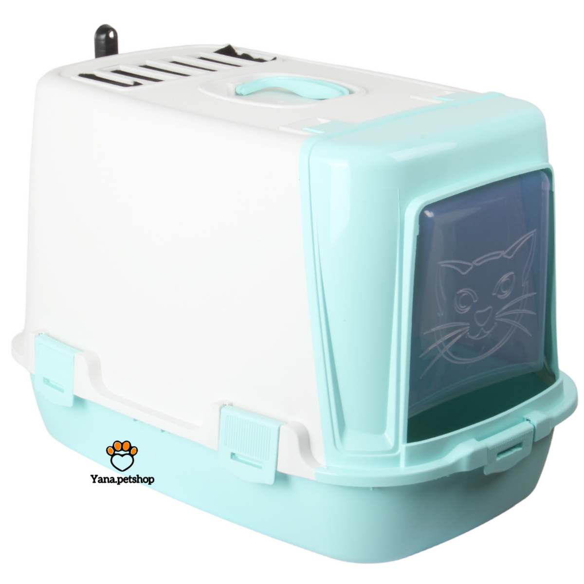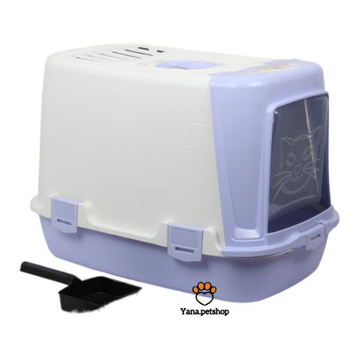 وجود درب شفاف با طرح گربه در این ظرف خاک، مانع پخش بو شده و در عین حال رفتوآمد گربه را آسان میکند.